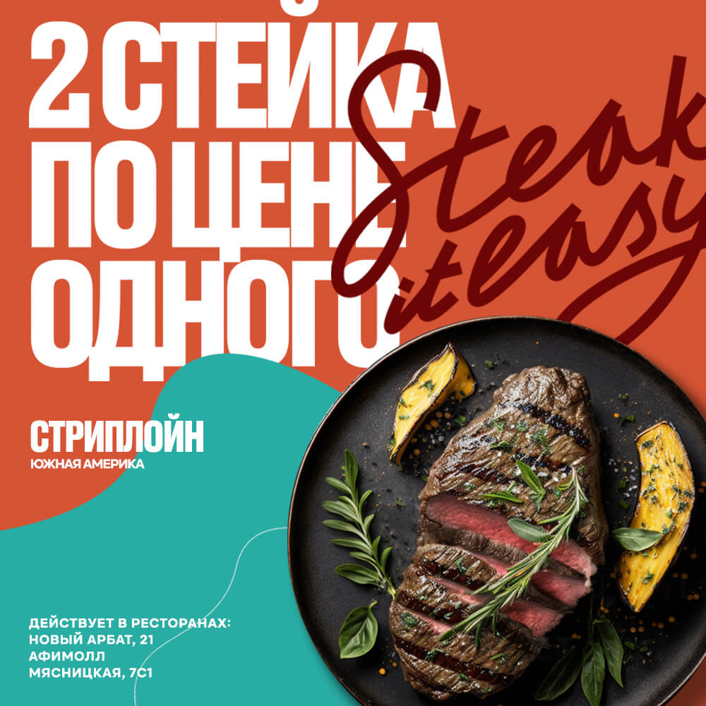 Встречайте супермясную акцию в Steak It Easy: целых два стейка Стриплойн по цене одного!