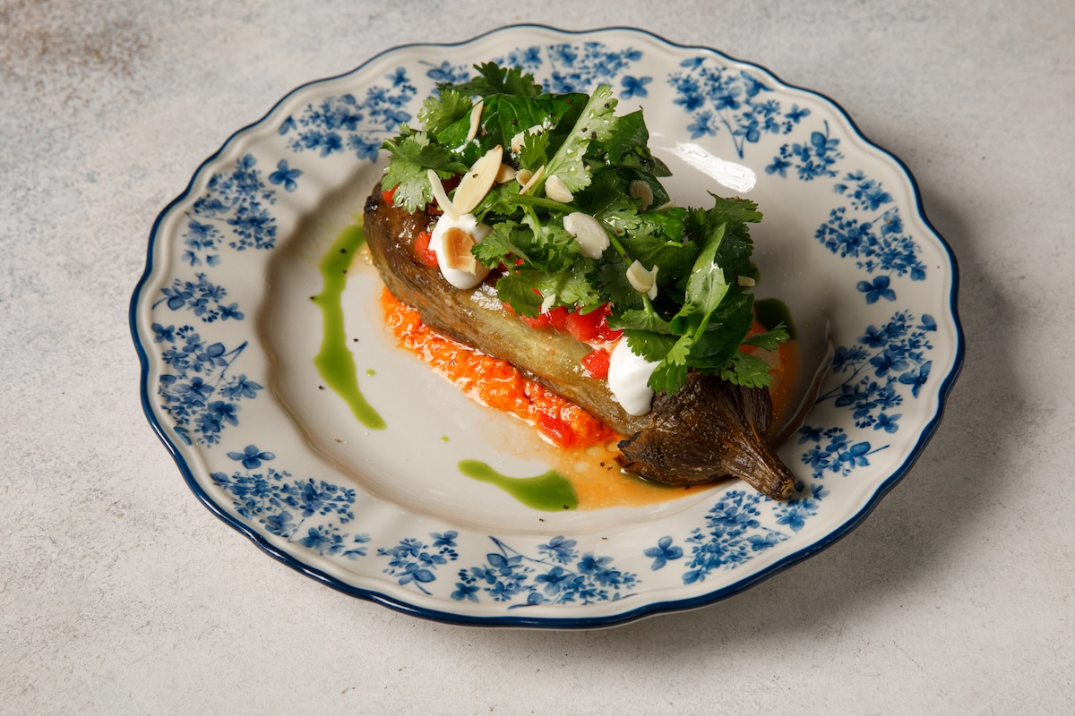 Маринованный цыпленок из хоспера с соусом дзадзики и пшеничной лепешкой